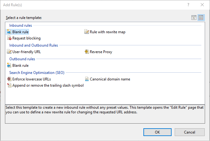 - Download and install the URL Rewrite module for IIS: https://www.iis.net/downloads/microsoft/url-rewrite