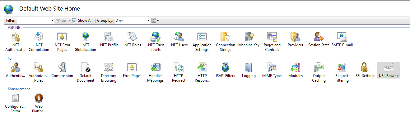 - In the admin console for this website, double click on the URL Rewrite option: