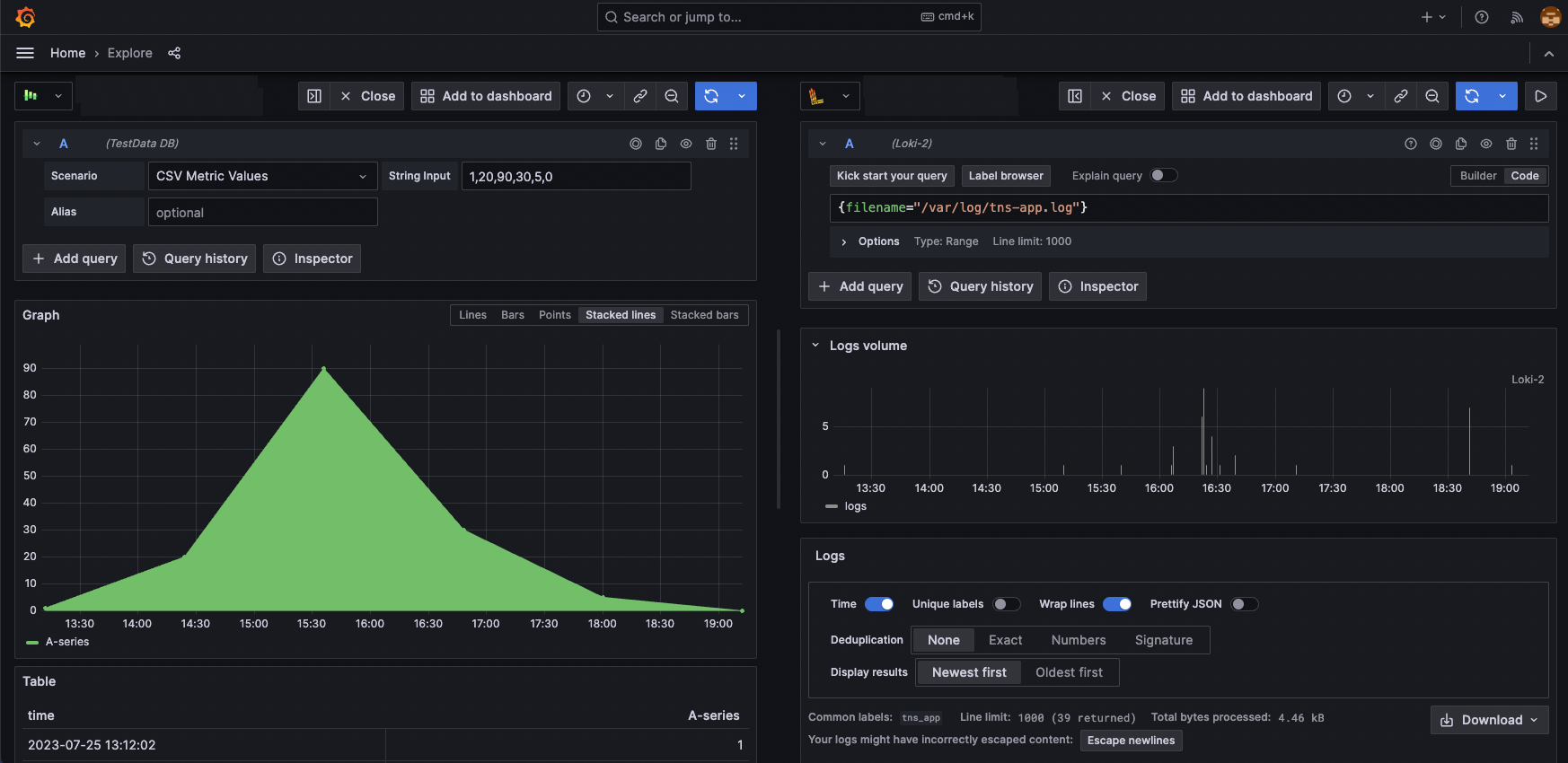 Explore is your gateway for querying, analyzing, and aggregating data in Grafana. It allows you to visually explore and iterate until you develop a working query or set of queries for building visualizations and conducting data analysis. If your data source supports graph and table data, there’s no need to create a dashboard, as Explore can display the results in both formats. This facilitates quick, detailed, real-time data analysis.